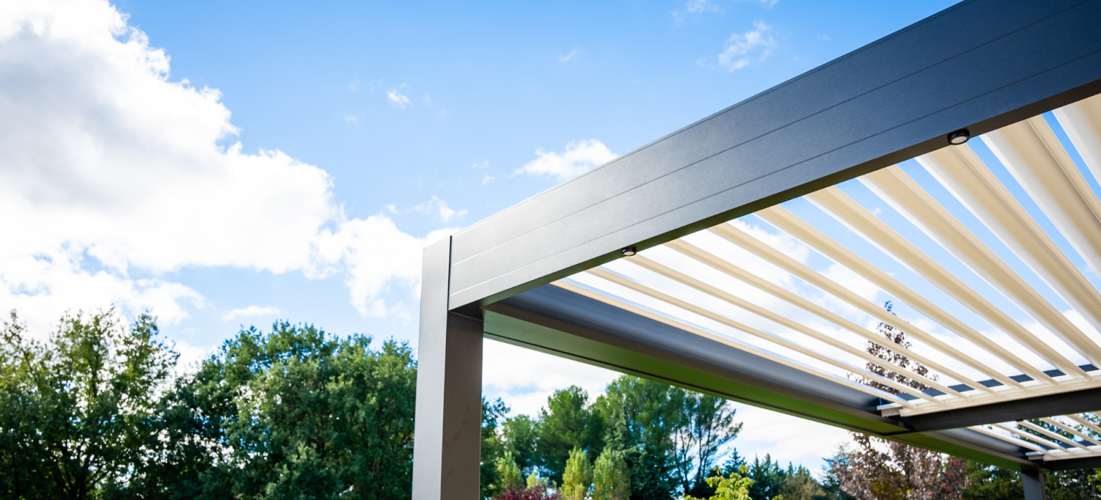 Les lames orientables de nos pergolas bioclimatiques offrent un contrôle précis de la lumière, de la ventilation et de la protection contre les intempéries.