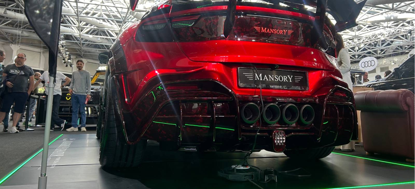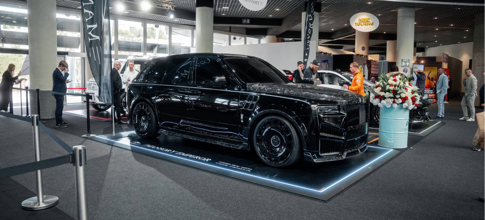 Ces structures ont été spécialement adaptées à la scénographie du stand Mansory, permettant de mettre en valeur les teintes spéciales, les jantes surdimensionnées, les lignes agressives et les détails carbone des modèles exposés. Le rendu visuel, puissant et maîtrisé, a renforcé l’impact des présentations auprès du public, des influenceurs et des médias présents.