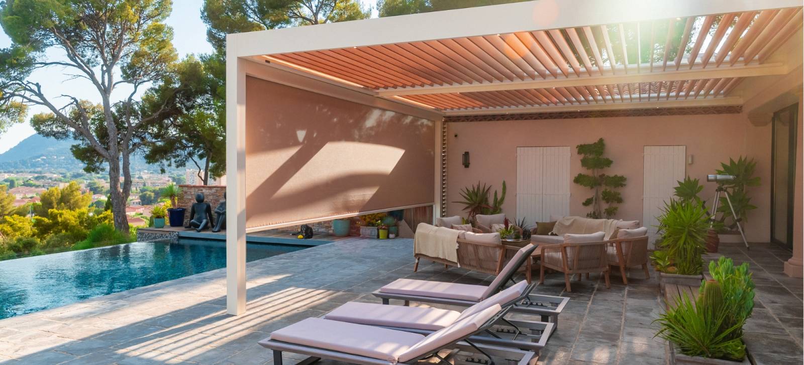 Ce système innovant permet de profiter de votre pergola bioclimatique à Aubagne toute l’année, sans craindre les intempéries. Nos structures en aluminium Reduxa sont conçues pour résister aux conditions climatiques du Sud, avec une finition thermolaquée qui garantit durabilité et élégance.