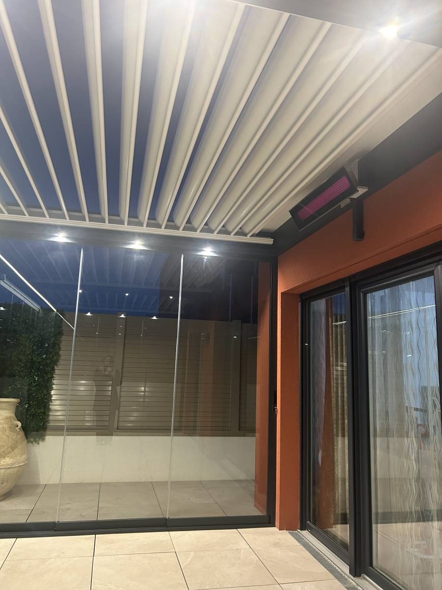 Vous aurez même la possibilité d'ajouter un chauffage sous votre pergola, et ainsi en fermant les rideaux de verre vous pourrez profiter de celle-ci même en hiver, et ainsi profiter de votre extérieur.
