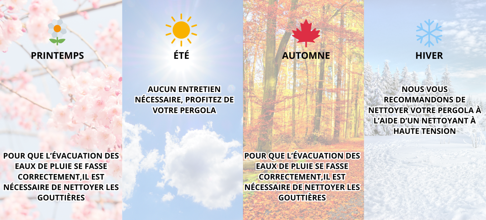 Bienvenue sur notre guide pratique dédié à l'entretien de votre pergola bioclimatique tout au long de l'année.