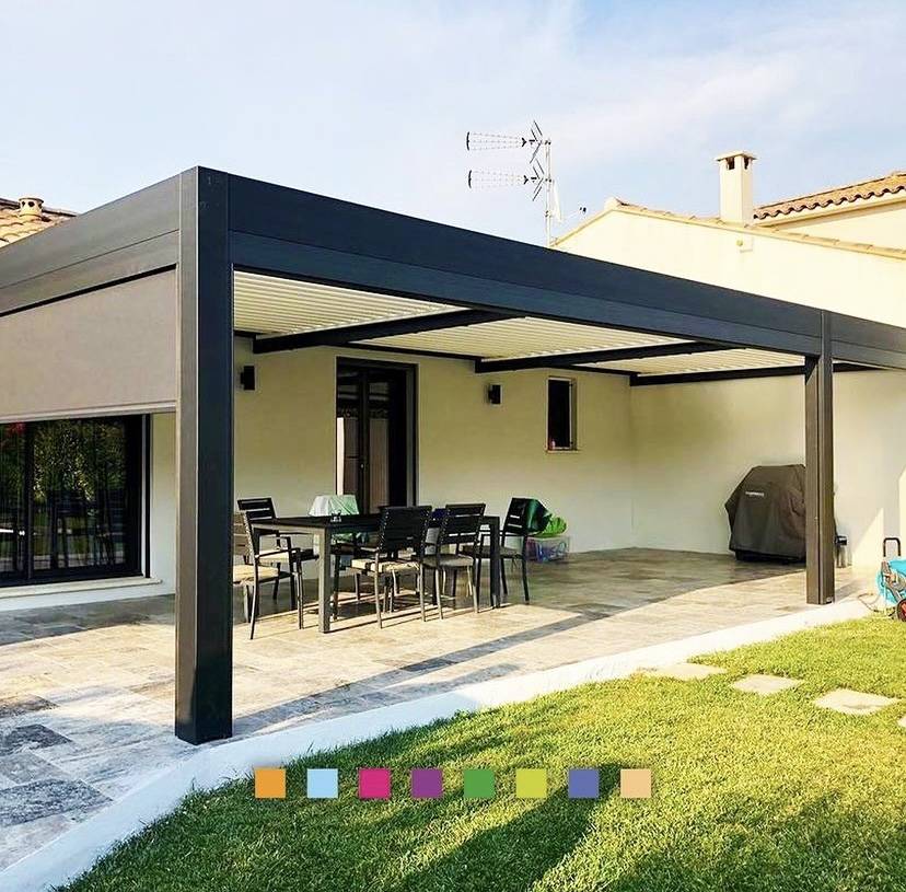 La couleur du store est accordée à la structure de la pergola. Mais vous pouvez choisir selon vos goûts et vos envies la couleur de toile que vous souhaitez !