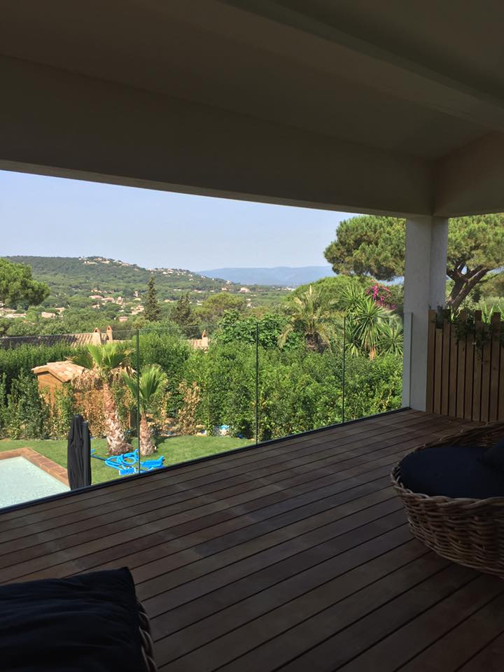fermeture en verre de terrasse avec des Garde corps Defender en verre dans une maison à Roquefort la Bédoule dans les Bouches du Rhône (13830) !