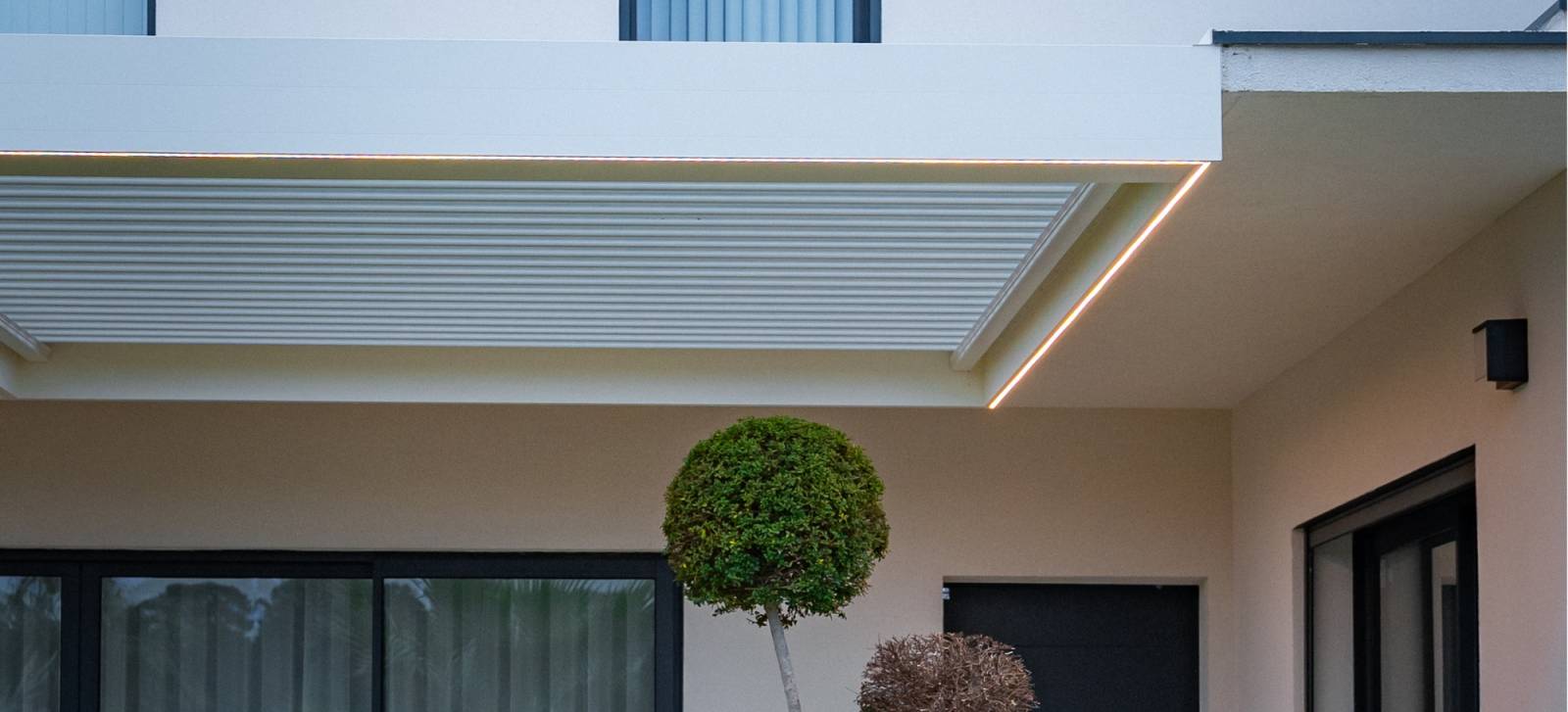 Découvrez cette installation unique à Marseille (13012) : une pergola bioclimatique blanche RAL 9010 de 10x5 m associée à un carport à toit plein, pour un extérieur sur-mesure, élégant et modulable selon vos envies.