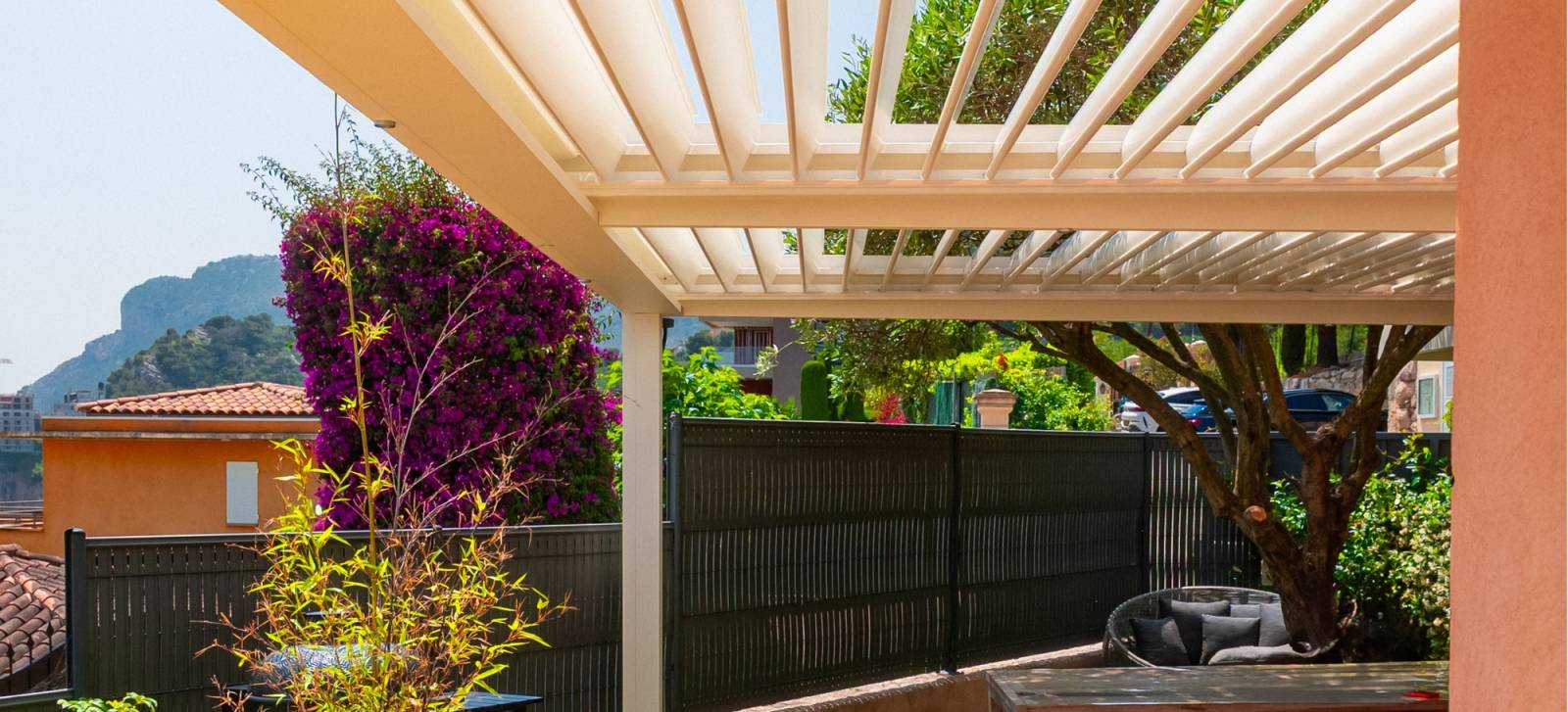 Dernièrement, nous avons eu le plaisir de réaliser l’installation d’une pergola bioclimatique sur les hauteurs de Beausoleil, dans un cadre exceptionnel entre ciel et mer. Le modèle retenu mesure 5 mètres par 4, avec une finition RAL 9010 (blanc pur), pour une intégration sobre et élégante dans l’environnement existant.
