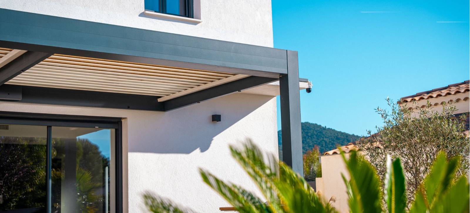 Nous avons récemment installé une pergola bioclimatique de 6x3 mètres, en aluminium RAL 7016 (gris anthracite), à proximité de Saint-Cyr.