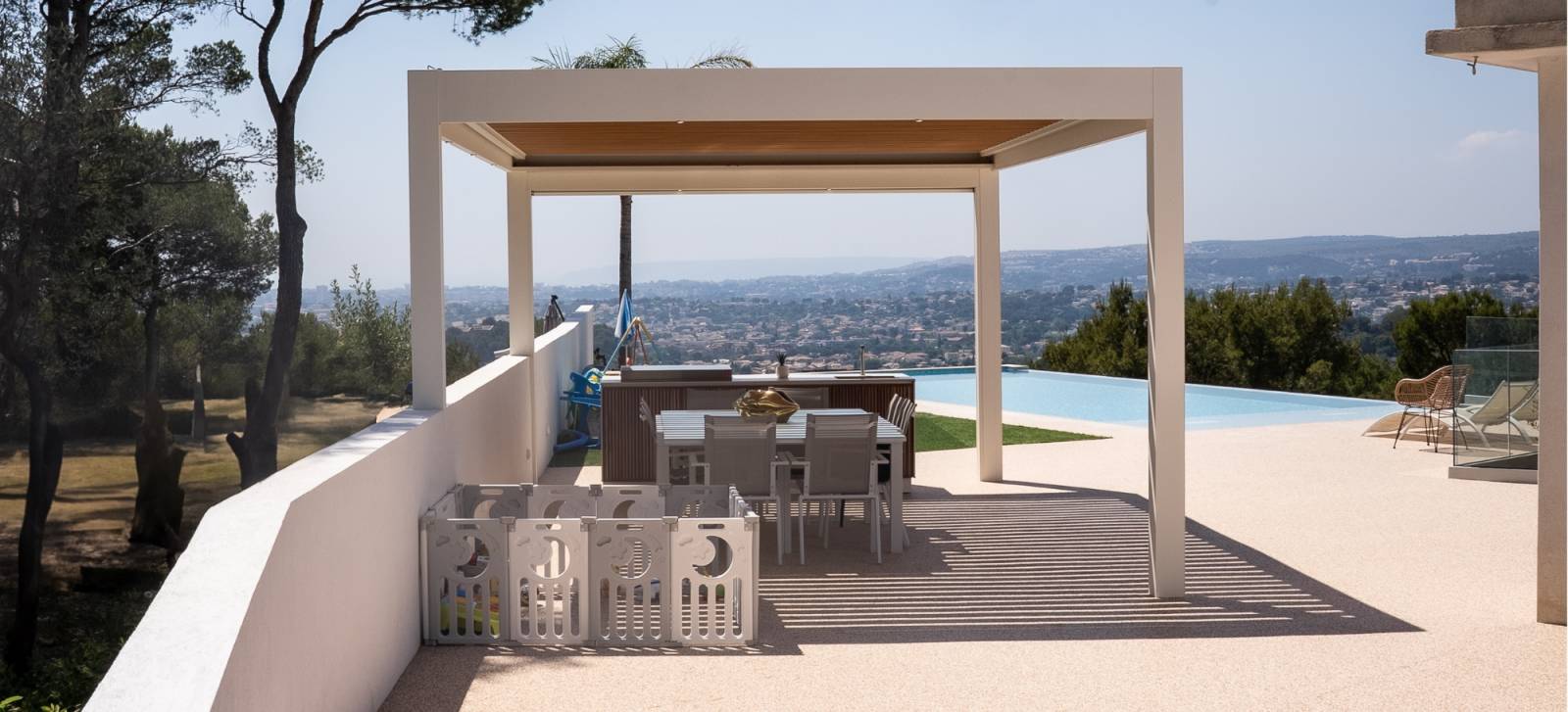C’est à Allauch, au cœur des collines provençales, que notre équipe a installé une pergola bioclimatique de 6x4 mètres, pensée pour devenir une véritable cuisine d’été. Avec ses dimensions généreuses, cette structure sur-mesure permet de cuisiner, recevoir et profiter de l’extérieur tout en étant protégé du soleil et des intempéries. Le toit à lames orientables permet de réguler naturellement la température et la luminosité, pour un confort optimal en toutes saisons.