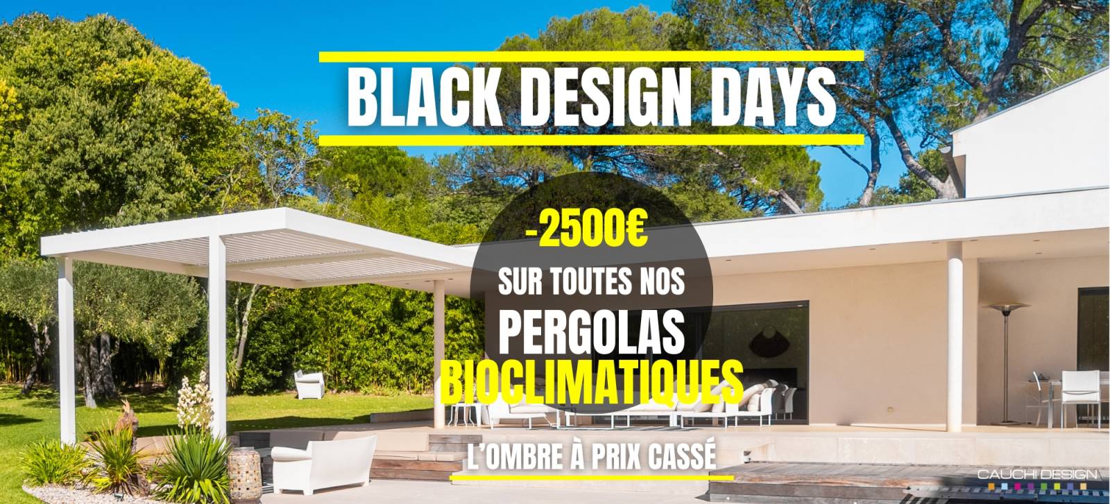 Les Black Design Days reviennent avec une remise immédiate de 2500€ sur toutes les pergolas bioclimatiques Cauchi Design. C’est le moment parfait pour allier esthétisme, innovation et confort dans votre espace extérieur.