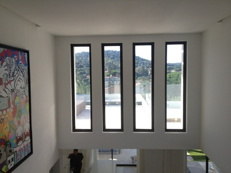 Dans une construction neuve, nous avons effectué la fourniture et toute la pose de menuiseries en aluminium à rupture de pont thermique de coloris noir 2100 sablé avec double vitrage de sécurité..