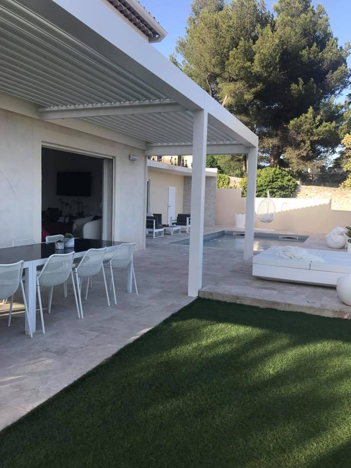 pergola bioclimatique sur la terrasse d'une villa proche d'Aix en Provence dans les Bouches du Rhône !