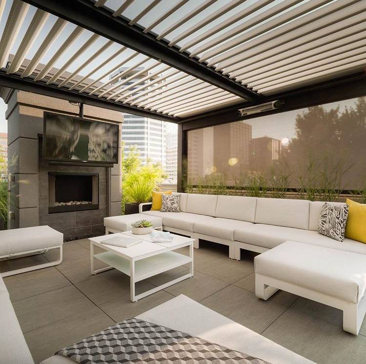 Ils sont motorisés et s’utilisent avec la même télécommande que votre pergola bioclimatique.